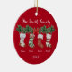 Personnalisez cet ornement de chausson de famille de quatre avec vos noms et date.