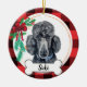 Ornement de caniche noir avec arrière - plan de buffle rouge et guirlande et arc de Noël - L'art a été peint à la main par moi et rendu disponible comme cet adorable ornement! Ajoutez n'importe quel texte (suggéré : "I ❤️ my Poodle" ou votre nom d'amante) visitez www.curella.net pour un portrait personnalisé, des autocollants, et plus encore.