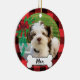 Ajoutez votre propre photo à ce joli ornement ! Le design comprend un chèque de bison rouge, un arc de Noël et une guirlande et un espace pour le nom de votre chiot (ou tout texte que vous aimez comme l'année, ou "Je ❤️ mon chien") visitez www.curella.net pour un portrait personnalisé, des autocollants, et plus encore.