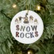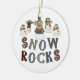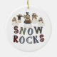 Plusieurs bonhommes de neige et un ange de neige avec le texte "Rochers de neige" sur un ornement de gardien de neige que vous êtes sûr d'aimer!