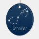 Ornement de constellation Zodiaque Scorpio personnalisé. Doté de la constellation de Scorpio sur un Arrière - plan de la Marine, cet ornement personnalisé de Scorpio apporte une parfaite addition à votre arbre de Noël. Scorpio est le huitième signe du Zodiac et comprend tous les individus nés du 23 octobre au 21 novembre. Le symbole de Scorpio est Le Scorpion. Les traits de personnalité de Scorpio sont déterminés, loyaux, magnétiques, passionnés et secrets. Scorpio's Birthstone est le Topaz et Scorpio's Ruling Planet est Pluto. La couleur et le texte Arrière - plans peuvent être Customisés