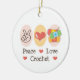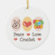Symbole de paix, coeur, fil et crochet dans rose et jaune sur les T-shirts de crochet, l'habillement, l'habillement, la papeterie et plus de marchandises et de cadeaux faisants du crochet. Montrez votre passion pour votre passe-temps préféré avec nos cadeaux mignons pour un crocheter avide.