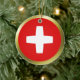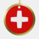 Les deux côtés de cet ornement comportent le drapeau de la Suisse morphed dans un cercle avec une jante d'or. Décoration suisse simple pour votre maison.