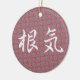 Sur un arrière - plan de fleur de prune, le kanji japonais pour la "persévérance" 'est écrit en manuscrit débordant de style de gyosho. La persévérance est "konki" dans le Japonais, et la fleur de prune est un symbole traditionnel de persévérance, commençant souvent à fleurir tandis qu'il reste neige au sol.
