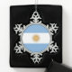 Illuminez votre saison des Fêtes avec fierté argentine en utilisant cet exquis ornement de flocon de neige avec le drapeau de l'Argentine! Réalisée avec soin, cette décoration affiche fièrement le design emblématique du drapeau argentin, avec ses rayures bleues et blanches frappantes et son emblème solaire doré. Qu'il s'agisse de décorer votre sapin de Noël, de rehausser votre décor de vacances ou de donner un cadeau à un autre admirateur de la culture argentine, cet ornement est la façon parfaite de célébrer la saison avec une touche d'élégance argentine. Découvrez la riche histoire et l'héritage de l'Argentine avec chaque flocon de neige scintillant. Que vous veniez d'Argentine ou que vous chériez simplement sa culture vivante et son peuple passionné, cet ornement est un symbole d'unité et de fierté. Portez un toast à l'Argentine et imprégnez vos festivités de vacances de charme argentin en utilisant ce magnifique ornement de flocon de neige.