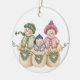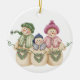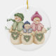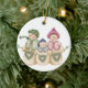 Une famille de bonhomme de neige avec des couronnes en forme de coeur sur un ornement de porcelaine qui ravira tous ceux qui aiment les bonhommes de neige et l'hiver!