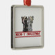 Deux chats avec des casquettes de vacances et le texte qui dit "Meow-y Christmas" sur les ornements de gardiens de Noël que vous pouvez choisir la forme de avant de commander!