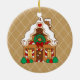 Des rayures de sucre de canne et une jolie maison en pain d'épice décorent cette fête, ornement de Noël. Utilisez ce vêtement maison en pain d'épice pour un arbre de Noël, un cadeau, un cadeau d'enseignant, la maison, le bureau, la décoration, la décoration de vacances, etc...Le design est de l'art original.
