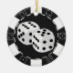 Ornement en céramique d'amusement avec le jeton de poker et les matrices noirs et blancs.