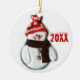 Ce petit ornement de bonhomme de neige avec un look 3D, foulard et casquette tricot est prêt pour vous de personnaliser avec votre propre texte, n'importe quelle année et n'importe quel nom. Idéal pour les enfants et tout âge, garçon ou fille. Un merveilleux cadeau de Noël et d'Hanoukka !