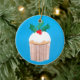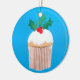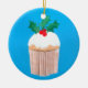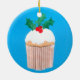 Un ornement de Noël avec un cupcake de chaque côté. Le givre blanc est surmonté d'une épine de sainte et de ses baies rouges et provient d'un collage en papier peint à la main par Judy Adamson. Des tasses à café et des cartes de Noël avec ce design sont également disponibles.