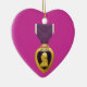 Ornement de Noël au coeur mauve. Cet ornement est décoré d'un côté avec la Médaille du coeur violet militaire des États-Unis et de l'autre avec le Père Noël et son sac de bonbons.