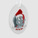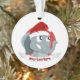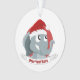 ornement de Noël avec l'illustration d'un éléphant mignon avec casquette Père Noël rouge; décoration géniale pour votre arbre de Noël, design modèle modifiable avec champ personnalisé pour votre propre texte, illustré par Radka Kavalcova