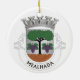 Apportez un peu de Buҁ aco National Palace à votre fête de Noël. D'un côté se trouve l'image du palais et de l'autre la crête de Mealhada. C'est un grand cadeau pour quiconque a visité Buҁ aco. L'ornement est facile à customiser aussi ! Pour plus d'articles du Portugal, visitez Azorean Designs à www.zazzle.com/azorean*, puis parcourez la catégorie Europe (Ouest) Portugal. #bucaco #pousadagifts #royalhuntinglodges #portugueseornaments @azoreandesigns1