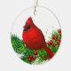 L'ornement de Noël est présenté en forme ronde et est fait de porcelaine avec un imprimé de vacances d'un oiseau cardinal rouge. Customisez cet objet ou achetez tel quel.