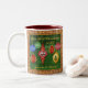 Cette élégante collection d'objets d'art classique de Noël a été créée pour orner vos cartes de Noël, autocollants, timbres et bien plus encore. Ce premier Noël Ensemble Mug a les noms de la Mariée et de la Salle personnalisée sur elle. Il y a sept ornements peints à la main qui pendent sur un arrière - plan de feuillage d'arbres verts de Noël et d'élégants tourbillons. La bordure extérieure présente un style baroque complexe, rouge de Noël et or. De nombreux produits ont été créés pour être coordonnés avec cette conception. VOUS POURREZ ÉGALEMENT PROFITER :