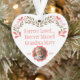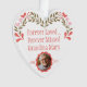 Honorer la mémoire d'un être cher avec cet élégant ornement de Noël en acrylique avec une photo personnalisée. Cet ornement en forme de coeur est fabriqué à partir d'acrylique durable et orné d'un magnifique design floral, symbolisant l'amour et le souvenir, en faisant un hommage unique et durable. L'ornement commémoratif avec des photos peut être personnalisé avec une image chère, la transformant d'une décoration simple en un ornement photo qui garde des souvenirs précieux vivants. En tant qu'ornement commémoratif personnalisé, il est pensé pour ceux qui veulent célébrer et se souvenir de la vie de ceux qui leur manquent, surtout pendant la période des fêtes. Cet ornement de Noël en acrylique allie beauté et polyvalence, s'adaptant parfaitement à tout décor de vacances. Que vous cherchiez des ornements mémoriaux personnalisés pour votre arbre ou un ornement commémoratif pour Noël comme cadeau de coeur, cette pièce personnalisée vous offre un rappel significatif de l'amour et du souvenir. Parfait pour les familles à la recherche d'un ornement commémoratif de Noël personnalisé ou pour ceux qui recherchent un ornement commémoratif de Noël avec une touche personnelle, cette pièce est un joli ajout à toute collection d'ornements commémoratifs de Noël. Apportez chaleur et sentiment aux fêtes grâce à cet ornement commémoratif acrylique - un moyen sincère de se souvenir, d'honorer et de garder proches les êtres chers