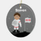 Cet ornement personnalisable de Noël d'astronaute peut être personnalisé avec le nom et l'année de votre enfant. Il fait un grand cadeau de stuffer ou de Noël de bas. Il comporte un garçon dans un uniforme d'astronaute. Conception de BabyStar de quelques éléments