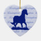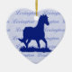 Un ornement de Noël du Kentucky a une silhouette bleue de cheval sur un arrière - plan sur toute la surface bleu chiné de motif de Lexington. Cadeau parfait pour des amants du Kentucky de l'état de Bluegrass, particulièrement les chevaux de course du Kentucky, le Kentucky Derby, le Churchill Downs et ou Lexington de renommée mondiale.