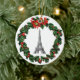 Une image vintage de la Tour Eiffel à Paris est encadrée par une vintage couronne sainte avec des poinsettias sur ce bel ornement de vacances. L'autre côté est vide et prêt à customiser avec votre nom et votre date ou tout message de votre choix. Beaucoup d'autres articles à thème français sont disponibles dans ma boutique Zazzle