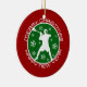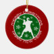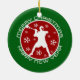 Ornement d'arbre de Noël de lacrosse. Joyeux Noël et bonne année. Perfectionnez la décoration pour donner à votre Noël de cet esprit de lacrosse. Conception de joueur de lacrosse avec des flocons de neige. Ornement bilatéral : Un côté - rouge avec le centre vert. Bord opposé - vert avec le centre rouge.