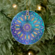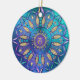 Le vert bleu métallique de l'ornement A de Noël de mandala de Capricorne de signe de zodiaque et l'arrière - plan pourpre de lavande avec un mandala coloré et le symbole astrologique pour le zodiaque signent le Capricorne la chèvre au centre.