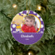 Pom-pom girl pourpre et jaune mignon daté encourageant l'ornement de Noël de photo. Un cadeau de Noël de merveille sure à priser depuis de nombreuses années pour venir.