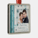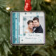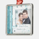 Ornement de photo de mariage d'hiver personnalisable avec votre propres photo et date de mariage de mariage en turquoise élégante et blanc avec le motif de fête de flocon de neige. Un cadeau élégant de Noël pour la famille et les amis ou pour décorer votre arbre ou maison de Noël pour les vacances. La manière parfaite de se rappeler votre jour du mariage d'hiver.