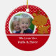 Papa vous êtes le meilleur ornement de Noël de photo comportant le petit renne le plus doux réglé sur un arrière - plan rouge et blanc de point de polka. Un cadeau de Noël de grand-parent de merveille sure à priser depuis de nombreuses années pour venir.