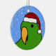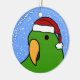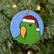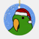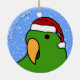 Ornement d'île Salomon Eclectus de bande dessinée de l'oiseau masculin dans vert clair. Il utilise un casquette de Père Noël, et le texte lit, "bonnes fêtes !" Ornements d'amant de perroquet d'amusement.