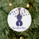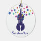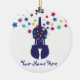 Ajoutez votre propre nom pour personnaliser cet ornement en céramique de Noël, comportant un violon bleu avec un éclat des étoiles.