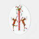 Amusant ornement de danseuse de Noël avec des rennes de dessin animé de Père Noël, Prancer et Dancer, dansant autour du pôle Nord. Modifiez le texte pour customiser facilement.