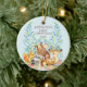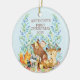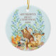 Le premier ornement de Noël du bébé comporte de petits cerfs communs, ours, hibou, renard, raton laveur et orignal doux réglés sur un arrière - plan bleu de scène de forêt. Personnalisez avec votre information de bébé et date et vous sont tous placent pour aller ! Cadeau daté merveilleux de souvenir pour ęr Noël de votre bébé.