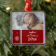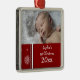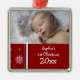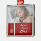Ęr ornement de Noël du bébé personnalisable avec votre propre photo de bébé dans les flocons de neige élégants et le motif de fête rouges et blancs de rayures. Un cadeau mémorable pour toute nouvelle maman cette saison des vacances.