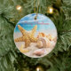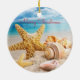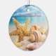 Ornement de Noël représentant des coquillages sur une plage de sable blanc.