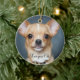 Ornement de Noël personnalisé en forme de chihuahua avec texte noir personnalisable (Amour de votre Chi) et photo - vous pouvez ajouter la photo de votre chien et votre texte. Il mesure 2,87 pouces et pèse 1,4 once. Vous pouvez trouver un design similaire avec photo et texte personnalisés sur d'autres ornements également - carré premium en métal, flocon de neige en étain ou ornement en boule en céramique.
