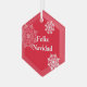 Cet ornement en verre de Noël est présenté en forme d'hexagone dans un imprimé de flocons rouges et blancs. Feliz Navidad texte Customiser cet article ou acheter tel quel.