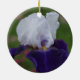 Un superbe iris violet clair et violet foncé orne cet ornement de Noël fleuri. L'ornement parfait pour les amoureux de l'iris à Noël ou à tout moment. Copyright ornamentsbyhenis