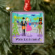 Mele Kalikimaka ! Cet ornement de Noël hawaïen rétro présente un dessin minimaliste d'un couple séduisant qui prend le voyage de vacances d'une vie! La scène moderne du milieu du siècle se trouve dans un aéroport tropical. M. et Mme Tourist posent devant les parois vitrées du sol au plafond. Après tout, ils veulent documenter chaque moment de leurs vacances au paradis. M. Tourist est habillé d'un costume noir, d'une chemise bleu clair, d'une cravate rouge et d'une fedora noire. Il tient une valise orange. Son bras est autour de sa belle mariée. Elle porte une robe rose chaude. Un sac à main bleu vif est accroché sur un bras. Un chapeau de Père Noël lui grace la tête blonde. Il ne ferait pas de voyager par avion et ne serait pas votre meilleur ! Tous deux portent des leis de fleurs colorés autour du cou. A côté d'eux, nous voyons une fille hula à la peau dorée et étonnante, aux cheveux noirs qui coulent. Miss Hula porte une jupe traditionnelle à l'herbe. Son hula top a cependant une tournure festive. Son top bikini est rouge avec garniture blanche. Mange ton coeur, Mme Claus ! Au lieu d'une fleur, elle porte un voile de saint dans ses cheveux. Sur un bras, elle a un lei hawaïen supplémentaire prêt à offrir à la prochaine personne de descendre de l'avion. Ah, ne pouvez-vous pas sentir les orchidées maintenant ? De l'autre côté du couple, un sapin de Noël a été relooké sur l'île. L'heureux cèdre est orné de coquillages pastel et d'étoiles de mer. De l'autre côté du verre, on peut voir le luxueux jetliner jumbo qui a amené le couple à sa destination de vacances. Sur le tarmac, une hôtesse de style années 60 se rend à l'immeuble. Elle porte un raccord de forme, un uniforme bleu et un casquette bleu casemate. Yowza ! Cette magnifique blonde peut me proposer du café, du thé ou du lait à tout moment ! Le ciel est une ombre d'aqua qui donne envie d'atteindre l'huile de bronzage ! On peut voir les silhouettes vertes des palmiers et la silhouette bleu foncé d'un avion volant au milieu des nuages bleu clair et moelleux. Oh, j'espère que ces pauvres suceurs dans cet avion ne sont pas en chemin pour revenir au quotidien ! Aloha !