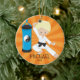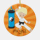 Le karaté blond mignon personnalisé et daté de garçon a personnalisé l'ornement de Noël réglé sur un arrière - plan orange. Visitez notre magasin pour regarder ce garçon adorable de karaté dans les une série de des cheveux et des poses.