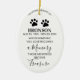 Décoration de sapin de Noël en mémoire de votre animal de compagnie avec une photo de votre animal de compagnie bien-aimé, une citation de sympathie qui dit "quand quelqu'un que vous aimez devient un souvenir, ces souvenirs deviennent un trésor", des empreintes de pattes, le nom de votre chien ou chat, et leurs dates de naissance et de décès. Placez-le sur votre sapin de Noël ou n'importe où dans votre maison, cet ornement est un cadeau unique pour quelqu'un de spécial.