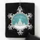 Ajoutez une touche de fantaisie à votre sapin de Noël en cette période de fêtes avec un ornement Turquoise de flocon de neige. Le design ornemental présente un trio d'arbres de Noël décorés dans la neige avec des flocons de neige tombant contre un arrière - plan turquoise. Autres cadeaux et objets de vacances disponibles avec ce design aussi.