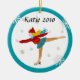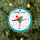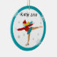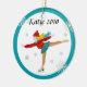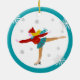 Cet ornement de Noël d'amusement comporte un graphique d'un patineur de glace sur l'avant et le dos. L'image est entourée par une frontière turquoise. Sur l'avant est un espace pour un message ou un nom fait sur commande.