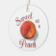 Montrez votre amour pour l'été avec ce thème de pêche ornement. Ce design de pêche douce et veloutée présente des tons chauds et lumineux de rougeur, écarlate, ambre, corail et lilas. Personnalisez en modifiant ou en supprimant le texte. J'ai créé ce motif à partir d'une image dans ma peinture acrylique originale.