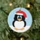 Ajoutez cet ornement mignon et coloré de vacances de pingouin de Joyeux Noël à votre arbre de Noël cette année. Cet ornement d'arbre de Noël comporte un pingouin utilisant un casquette de Père Noël avec un arrière - plan de flocon de neige. Le dos de l'ornement inclut le "Joyeux Noël !" texte qui peut être customisé. Il est également facile de personnaliser cet ornement de vacances avec un nom ou une date. Penny Westbrook de © de pingouin de Joyeux Noël