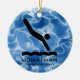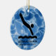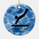 Ornement personnalisé de plongeur Noël 20XX. Un plongeur en mouvement contre un arrière - plan bleu ondulé, comme de l'eau. Tout le texte personnalisable, avant et arrière !