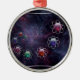 Illustration de l'infini, traversant l'univers pour combiner le microscopique et le télescopique dans un arc-en-ciel de formes et de couleurs. Colonne d'atomes multicolores de bleu, rose, rouge et vert entourés d'anneaux d'argent, qui traversent l'espace en spirale sur fond de galaxies fractales colorées.