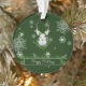 Décorez votre arbre cette saison de vacances avec un ornement de rennes verts. Le design ornemental comprend un renne festif portant une couronne de Noël ornée de baies sèches et de flocons de neige en chute, ainsi qu'une boîte de salutation décorée de guirlandes de vacances. Autres cadeaux et objets de vacances disponibles avec ce design aussi.