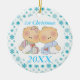 Le premier ornement merveilleux de bébé de Noël ensemble a les bébés jumeaux de garçon et de fille avec la citation du "ęr Noël" sur l'arrière - plan de flocon de neige. Un beau cadeau de souvenir pour un baby shower jumeau ou un stuffer de bas pour les parents des jumeaux. Ajoutez la date pour le rendre mémorable.