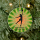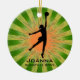 L'ornement personnalisé de volley-ball féminin Noël 20XX sur un arrière - plan de starburst vert. Tout le texte personnalisable, avant et arrière !
